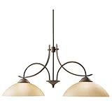 This classic island-style chandelier offers a bright accent for kitchen spaces, counter areas and more. The design features a bent metal frame with eye-pleasing arcs. It comes in an olde bronze finish and features twin pieces of sunset marble glass. Includes two 6" and two 12" downrods. From Kichler lighting. 55-1/2-Inch maximum overall fixture height Two 12-Inch and two 6-Inch included stem segments allow for height adjustment Hybrid design is suited for compact fluorescent bulb for energy savings Listed to UL/CSA/ETL standards for dry location use Coordinates with the entire Olympia lighting collection